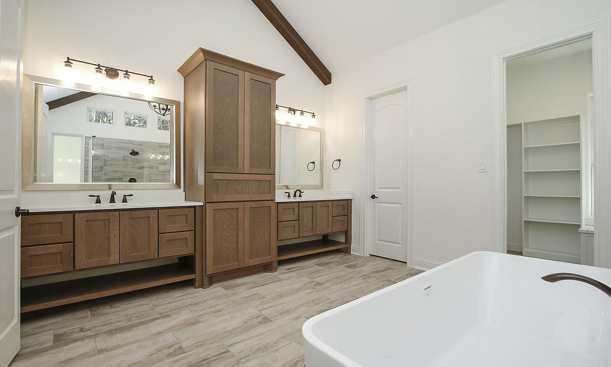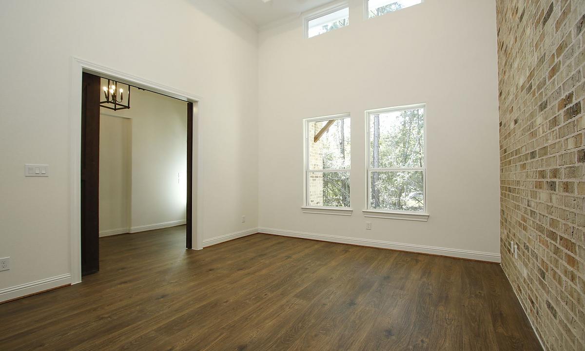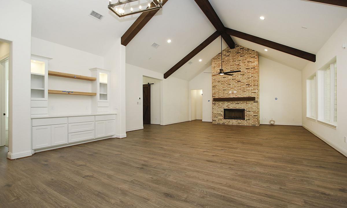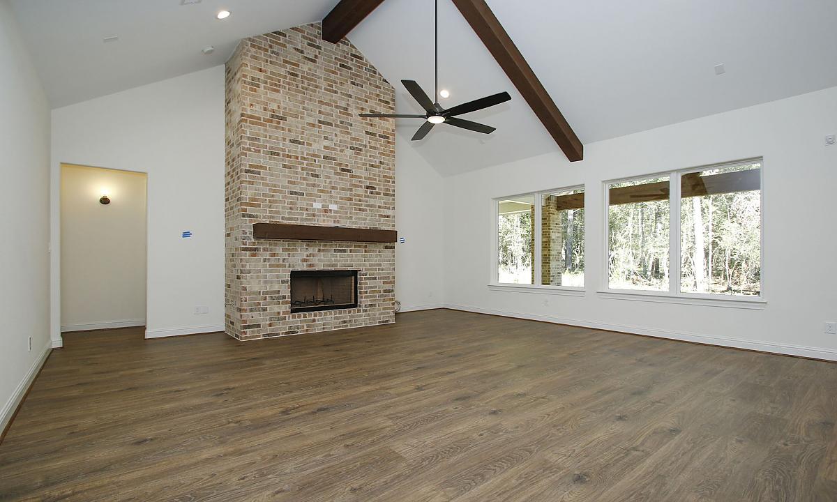 Nothing is more stunning than this floorplan with all of the brick wall accents and warm brown cedar beams. When you enter this home, you are welcomed into an open-concept living, dining, and kitchen area that even has its own coffee bar area. Another key highlight of this three-bedroom home is the large outdoor veranda with tall ceilings that makes us fall in love with the beauty of nature all over again!