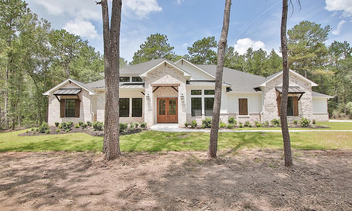 Picturesque home is complete with vaulted beam ceilings, coffee bar, and large study.