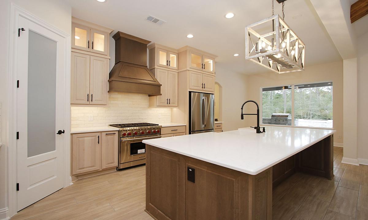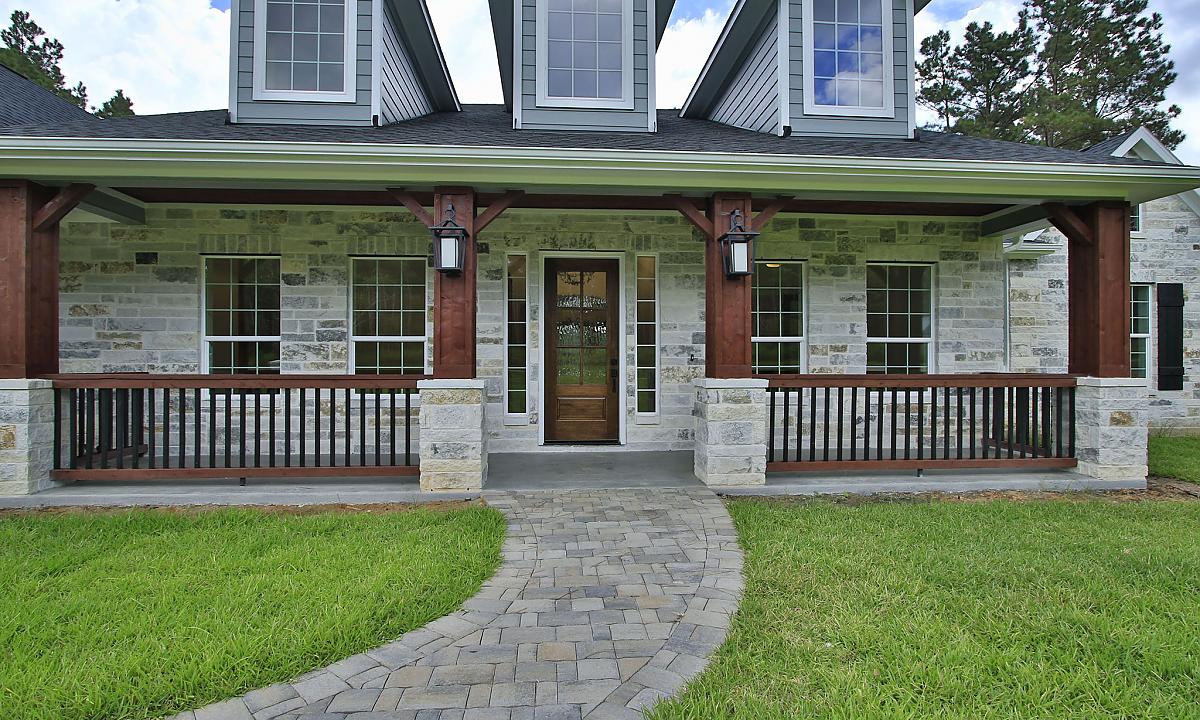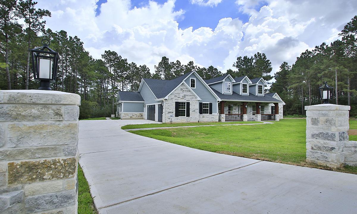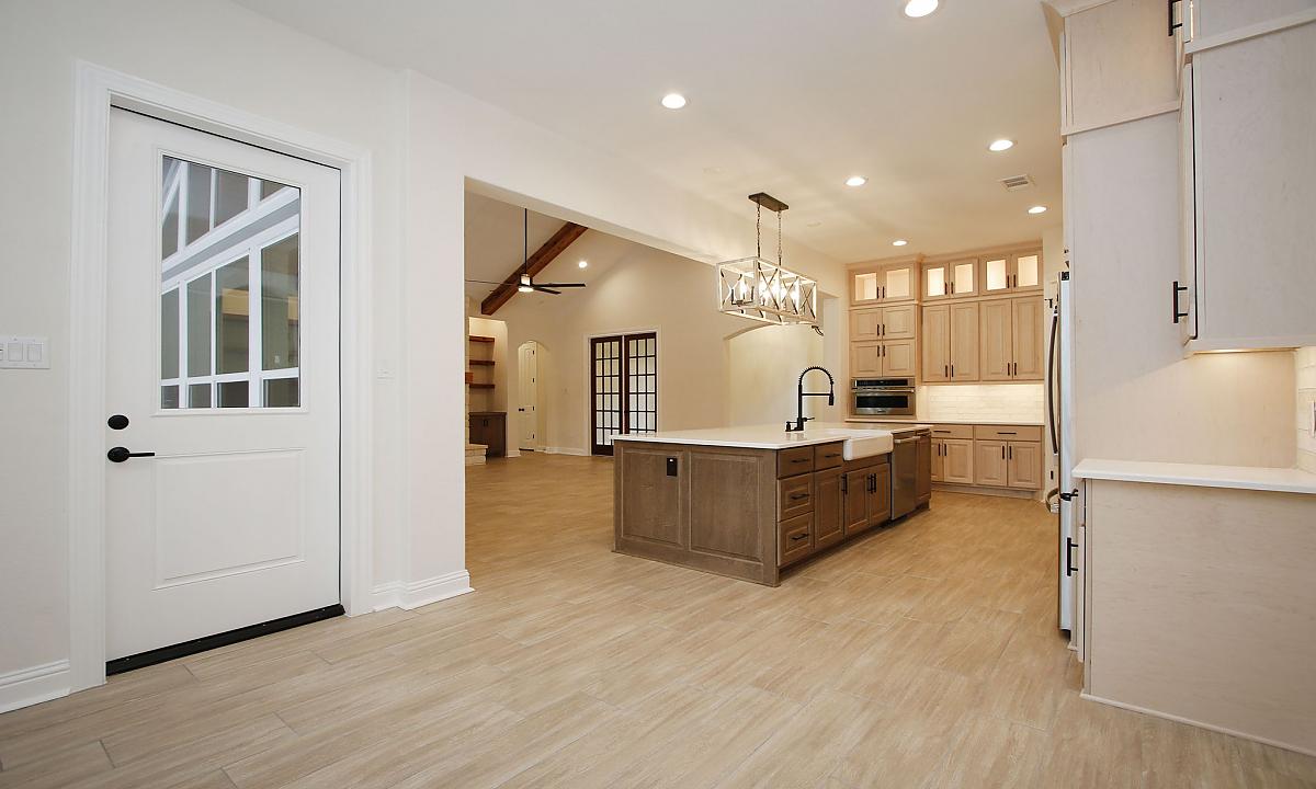 This custom farmhouse combines timeless country charm with modern design. Featuring 3 bedrooms, 2.5 baths, a formal study, and a versatile bonus space, the home balances functionality and style. From its stone-and-siding exterior with a farmhouse porch and railing to the vaulted living room with wood beams and a stone fireplace, every detail feels warm and inviting. The gourmet kitchen flows seamlessly into outdoor living, where a covered veranda, summer kitchen, and sparkling pool create the perfect retreat.