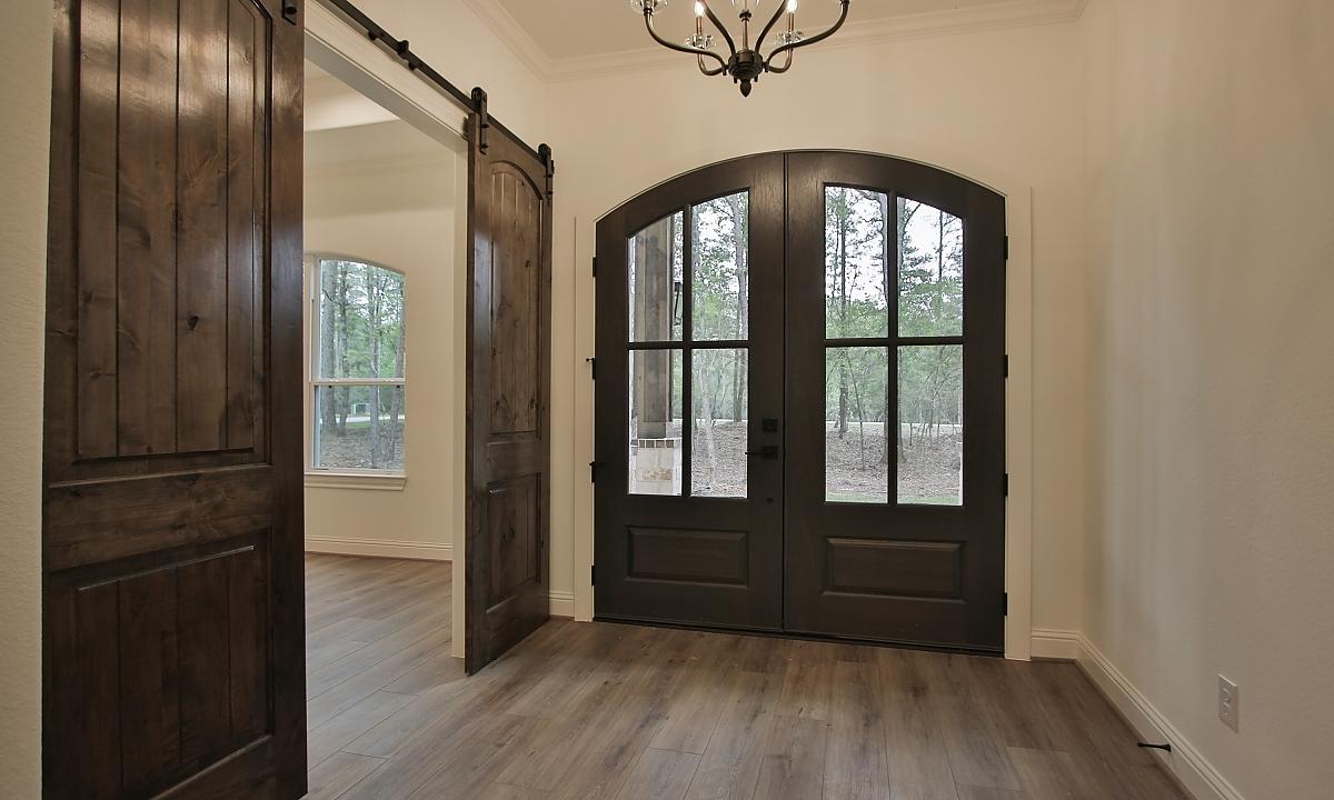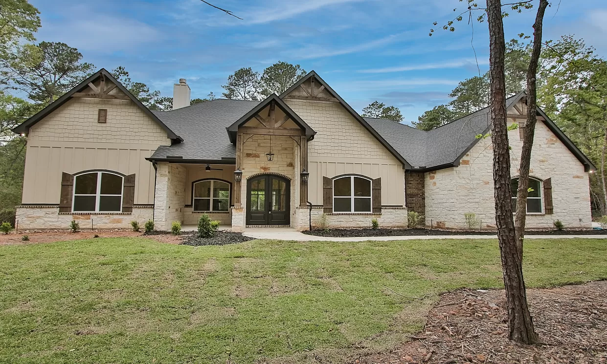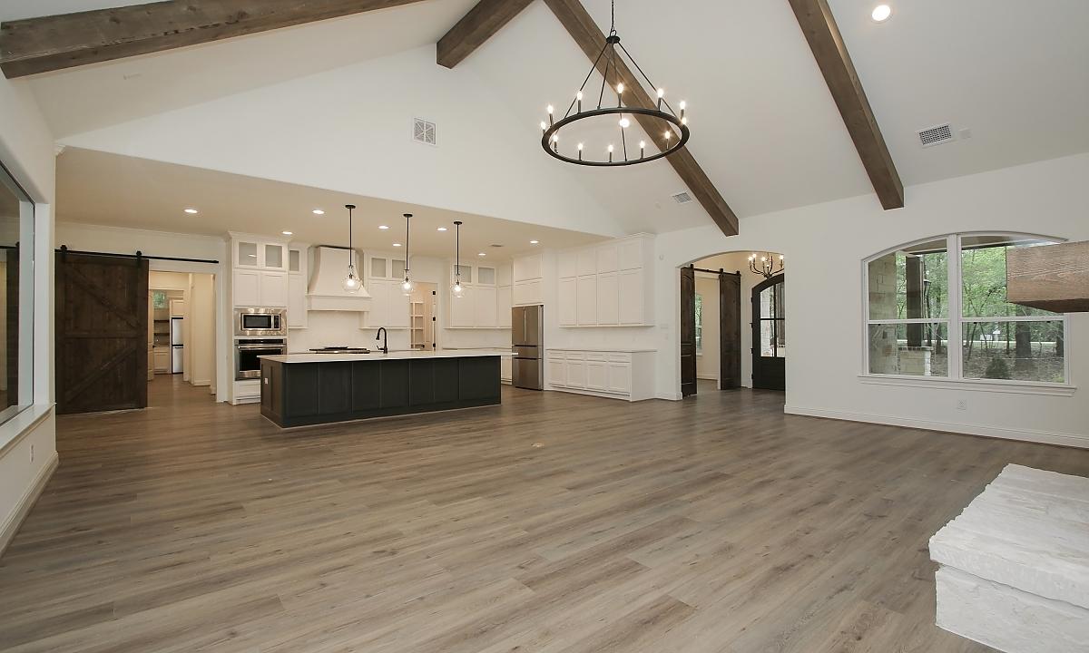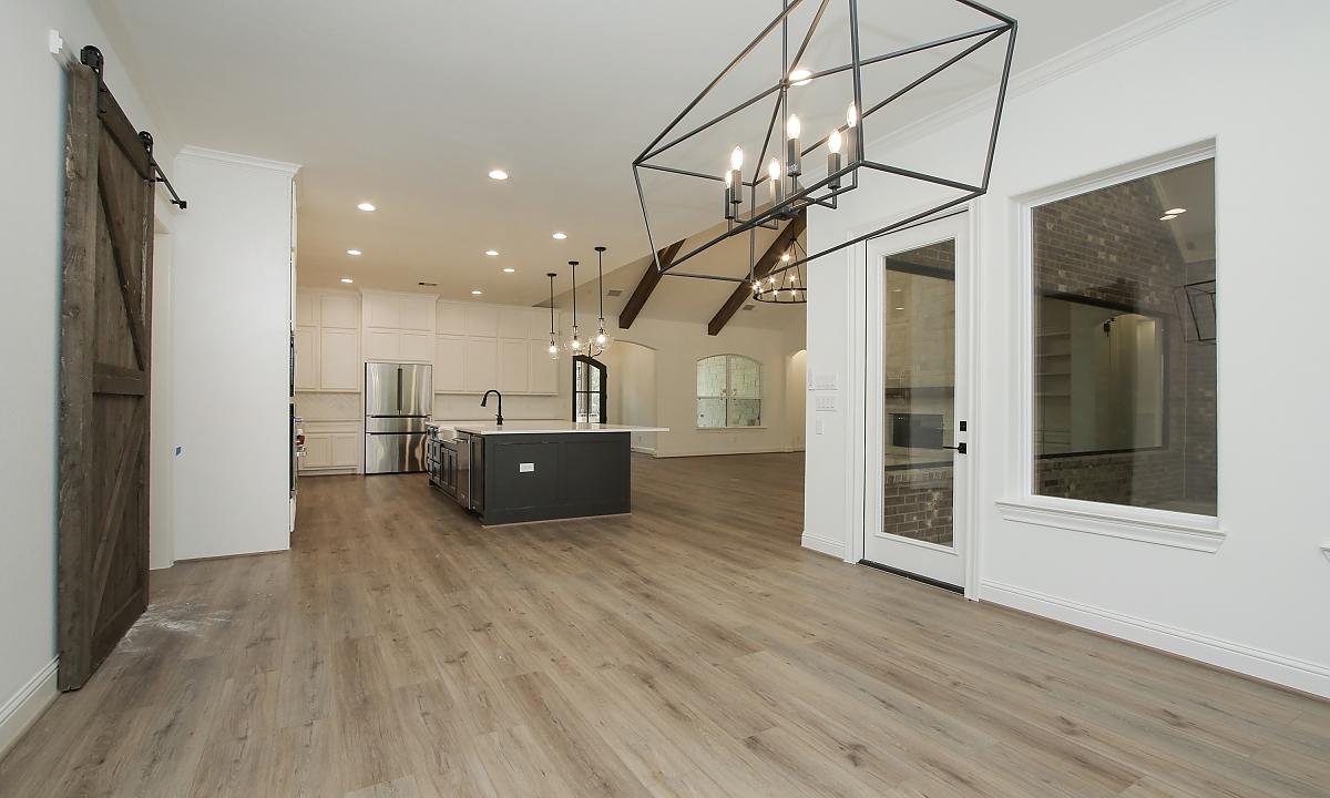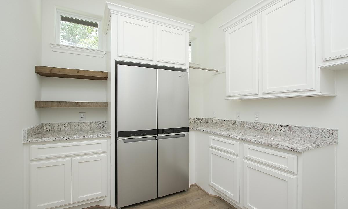 Elegant home features large kitchen with plenty of cabinents for storage, custom built-ins in the living room, and a freestanding tub in the master suite.