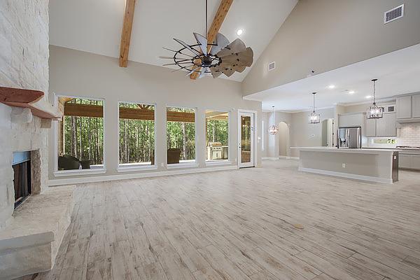 Grand entrance leads to a huge family room and kitchen, and the master closet is as big as a bedroom.