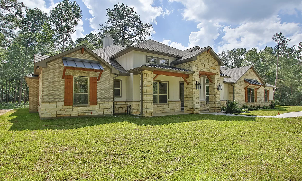 The a mix of brick and stone accents truly make this home shine, furthermore, the layout of this design is fabulous with it being a one-story version of our Republic Grand Ranch model home.