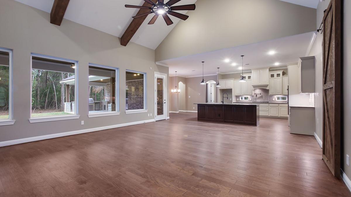 Country home features a cozy breakfast nook, His & Hers walk-in closets, and a spacious media room.